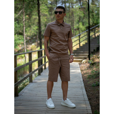 Комплект чоловічий лляний базовий "Flax" Intruder коричневий: поло + шорти