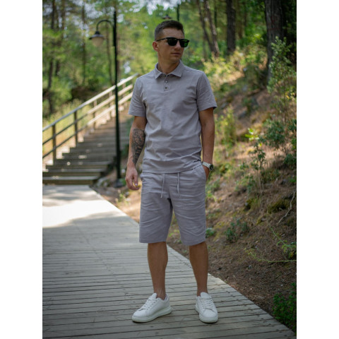 Комплект чоловічий лляний базовий "Flax" Intruder сірий: поло + шорти