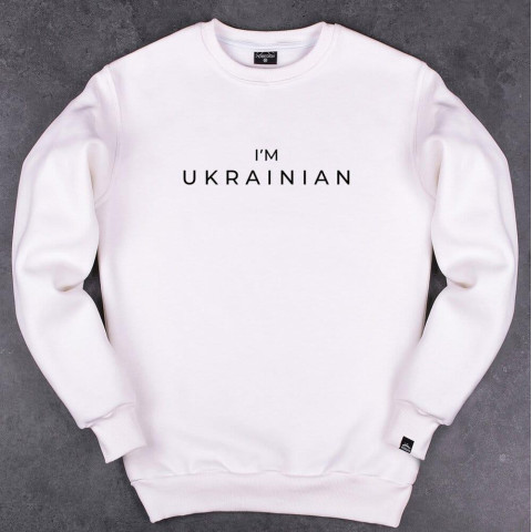 Світшот Pobedov 007 ЗИМА - наклейка чорна I'm UKRAINIAN Молочний