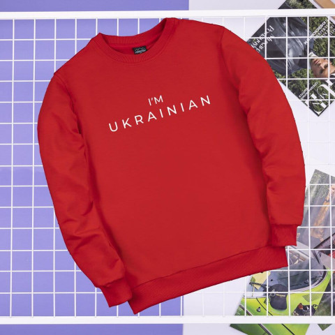 Світшот Pobedov 001 - I'M UKRAINIAN наклейка біла Червоний