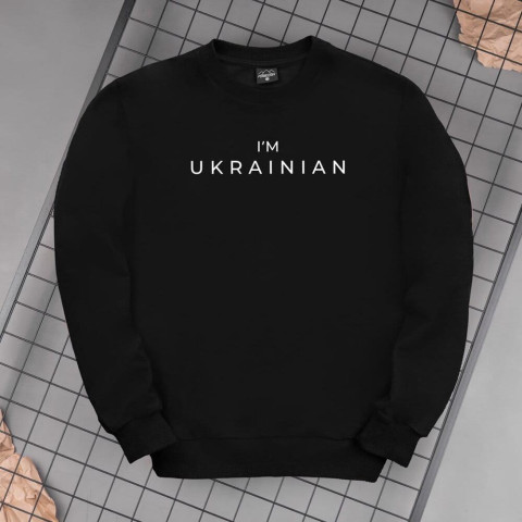 Світшот Pobedov 001 - I'M UKRAINIAN наклейка біла Чорний