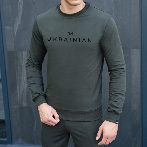 Світшот Pobedov 001 - I'M UKRAINIAN наклейка чорна Темно зелений