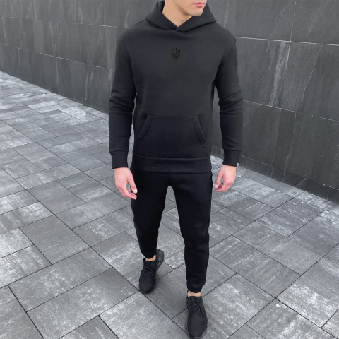 Худі Pobedov 007 ЗИМА - Герб 4см наклейка чорна Чорний