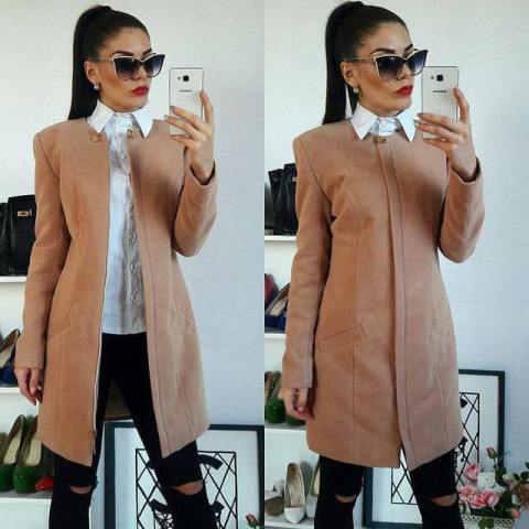 Модне кашемірове пальто на стьобаній підкладці. Застібається на блискавку і пряжку.