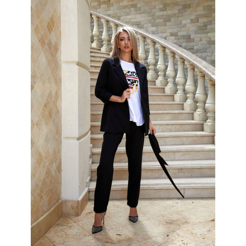 Блуза з рукавом 3/4 біла з рисом в тон жакету і брюк, з тканини софт - тонка, легка, ковзана, напівнатуральна.