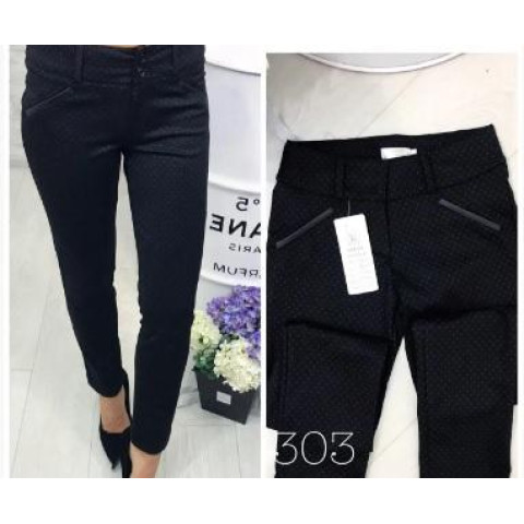 Брюки 303 екокожа на карманах знизу прямі, колір чорний в крапку