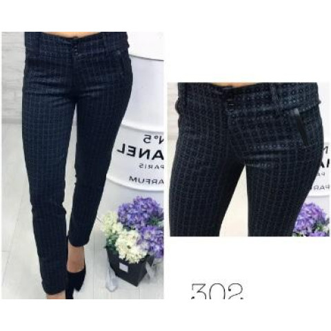 Брюки 302 екокожа на карманах, колір чорний в ромбік