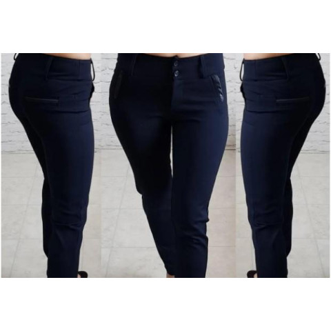 Брюки 302 екокожа на карманах, колір синій