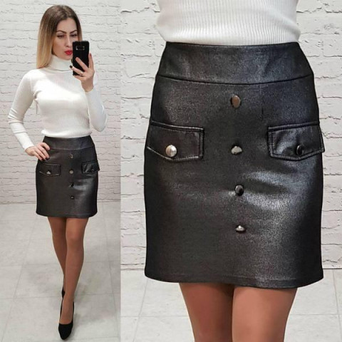 Елегантна та стильна спідниця з ефектної еко-шкіри стане чудовим вибором для повсякденного або офісного образу. Модель має приталений крій, що підкреслює фігуру, та актуальну довжину міні. Декоративні ґудзики спереду додають вишуканості, а накладні кишені надають зручності та трендовості.