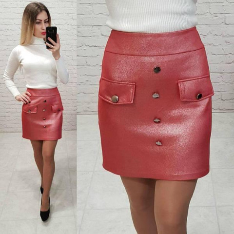 Жіноча спідниця з еко-шкіри з ґудзиками та накладними кишенями