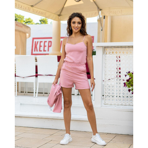 Жіночий костюм-трійка — майка на тонких бретелях, сорочка з коротким рукавом та шорти.