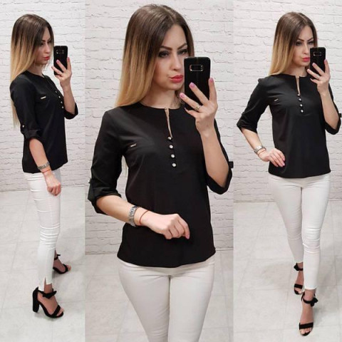 Красива і елегантна блуза з тонкої непрозорої тканини софт з рукавом 3/4 . Цю стрейчеву рубашечную тканина Ви оціните по достоїнству. Головна її відмінність від звичайної сорочки збережено вже в самій назві даної тканини – це наявність стрейчу, що дозволяє створювати з даної тканини більш зручні, акуратні і приталені по силуету виробу.