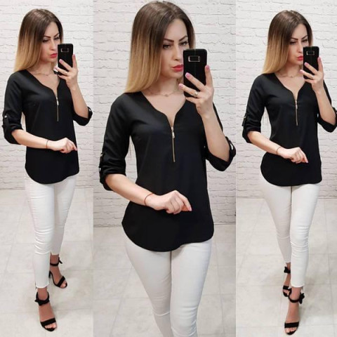 Новинка 2023! Блузка с молнией на груди — романтичная и универсальная деталь гардероба. Она комбинируется с брюками, джинсами и юбками разных фасонов. Ее используют в классическом и повседневном стилях.