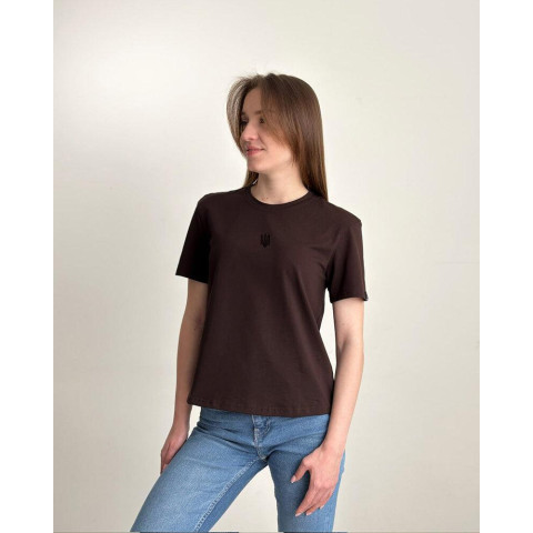 Футболка жіноча Pobedov Freedom - ГЕРБ ЧОРНА ВИШИВКА Шоколадний
