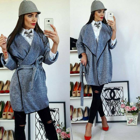 Кардиган на поясі, арт. 758, колір сіро - синій