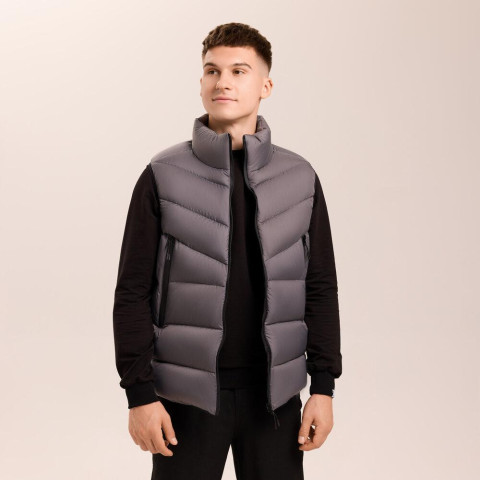 Жилетка має прямий крій, що підходить для будь-якої статури, та відсутній капюшон, що додає їй стриманого, але сучасного вигляду. Зручність у використанні забезпечують три кишені: дві зовнішні бокові кишені на блискавці для рук і одна потаємна внутрішня кишеня на блискавці для цінних речей.