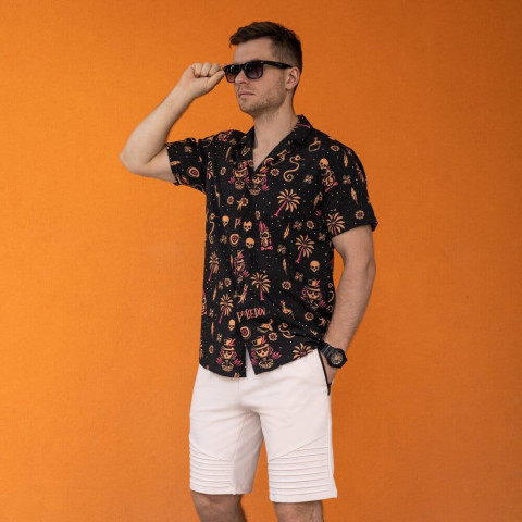 Стильна та яскрава принтована сорочка з відкладним коміром і коротким рукавом Pobedov “Dejavu” - створена, щоб підкреслити ваш стиль та комфорт в літні дні. Неважливо, чи йдеться про прогулянку по місту, відпочинок на пляжі або вечірку з друзями - ця сорочка виглядає однаково впевнено в будь-якому контексті. Матеріал - легка європейська плащівка, яка забезпечує швидке висихання, не вигорає на сонці та не розтягується. Отже, ваша сорочка буде виглядати новою навіть після багаторазового прання та використання. Сорочка Pobedov "Dejavu" легко поєднується з різними елементами гардеробу, від джинсів до шорт. Вона особливо добре виглядає з нашими шортами “Pool day” або “Vocation”. За допомогою цієї сорочки ви з легкістю створите стильний і сучасний образ.