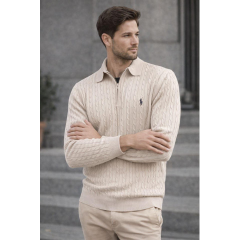Джемпер поло POLO світло бежево-сірий SwiatPRL007
