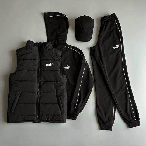 Спортивний костюм + Кепка + Жилетка PUMA Чорний колір