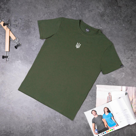 Футболка Pobedov Peremoga - Герб біла вишивка Хакі