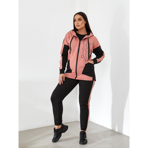 Неймовірно стильний і теплий прогулянковий костюм із трикотажу пеньє — не кашлатит, зсередини байка (розтяжність середня). Кофта з капюшоном, застібається на блискавку. Рукав на манжеті. Спереду дві великі кишені.