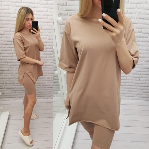 М'який і приємний до тіла комплект з футболки конверсайз і шорт (Велосіпедок). Довга футболка вільного кроля з круглим вирізом і розрізом збоку. Слабкі шорти з комфортною посадкою. Ідеальний літній костюм для прогулянок на кожен день!