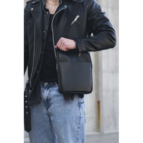 Чоловіча Шкіряна Сумка Месенджер Without Metal Black