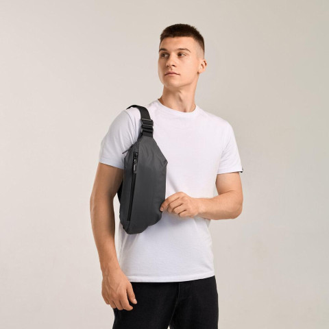 Сумка Pobedov Minimal — ідеальний вибір для активних та стильних людей. Виконана з водовідштовхувальної нейлонової мембранної тканини, ця сумка забезпечує надійний захист ваших речей від вологи та непогоди. Внутрішня підкладка з поліестеру гарантує додаткову міцність та комфорт у використанні. Ремінь регулюється за допомогою пряжок, застібається фастексом. Всього виріб має 1 центральну кишеню на блискавці, 1 задню кишеню на прорезиненій блискавці, 3 внутрішніх кишені, 1 місце під пляшку з водою. Спинка виробу має м'яку вставку. Ширина 7 см, довжина 38 см, висота 15 см.